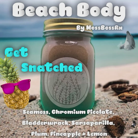Sea Moss BEACH BODY formula - GET SNATCHED! Sea Moss + Chromium Picolate, Plum/Prune, Bladderwrack, Sarsaparilla, Pineapple and Lemon to assist with QUICK Weight Loss. (16oz) * (Use code SOCIAL10 for an extra 10% off!)